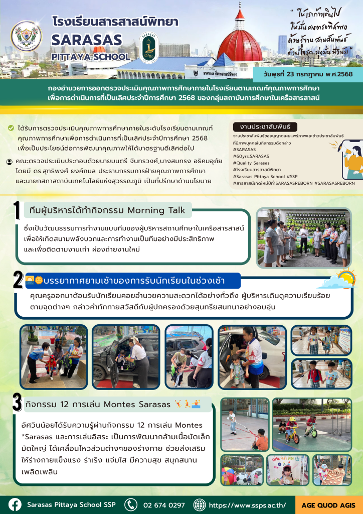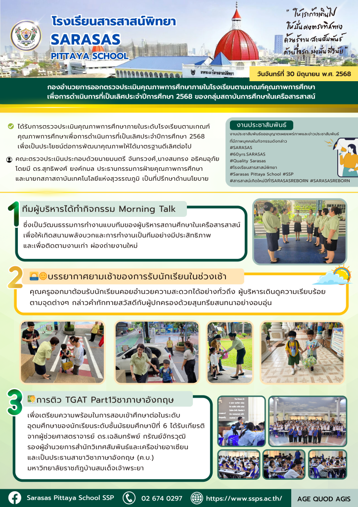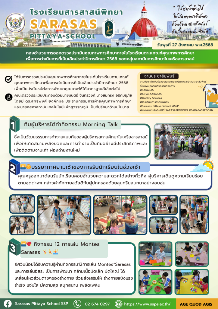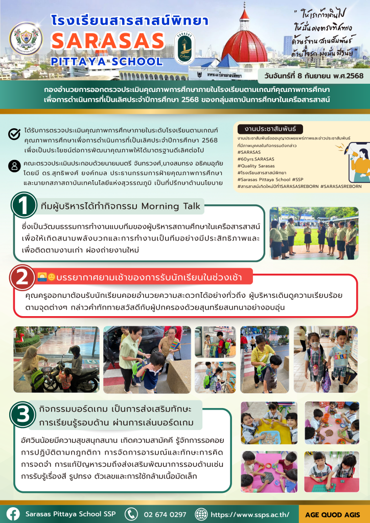 กองอำนวยการออกตรวจประเมินคุณภาพการศึกษาภายในโรงเรียนตามเกณฑ์คุณภาพการศึกษาเพื่อการดำเนินการที่เป็นเลิศ ของกลุ่มสถาบันการศึกษาในเครือสารสาสน์❤️ โรงเรียนสารสาสน์พิทยา